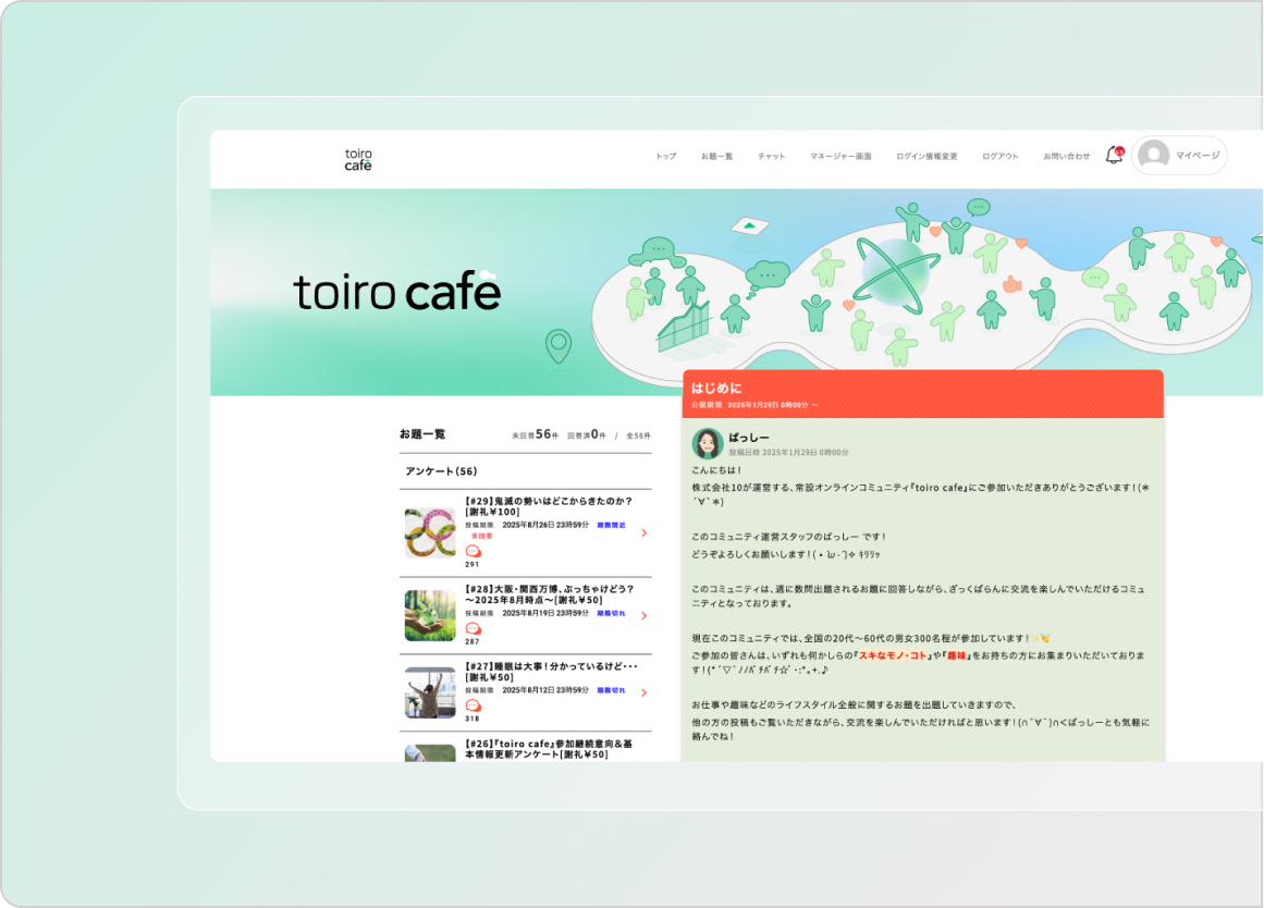 自社消費者コミュニティtoiro caféのメンバーが対象だからすでに深い関係性を構築済み